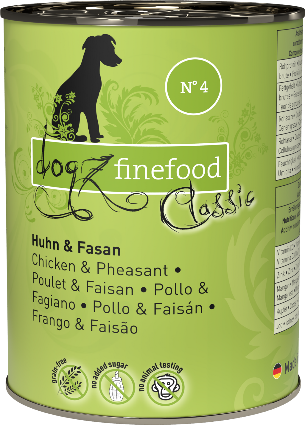 Izkušnenj v jeziku slovenščina za izdelek dogz finefood Pasja hrana Classic No. 04 - Piščanec in fazan