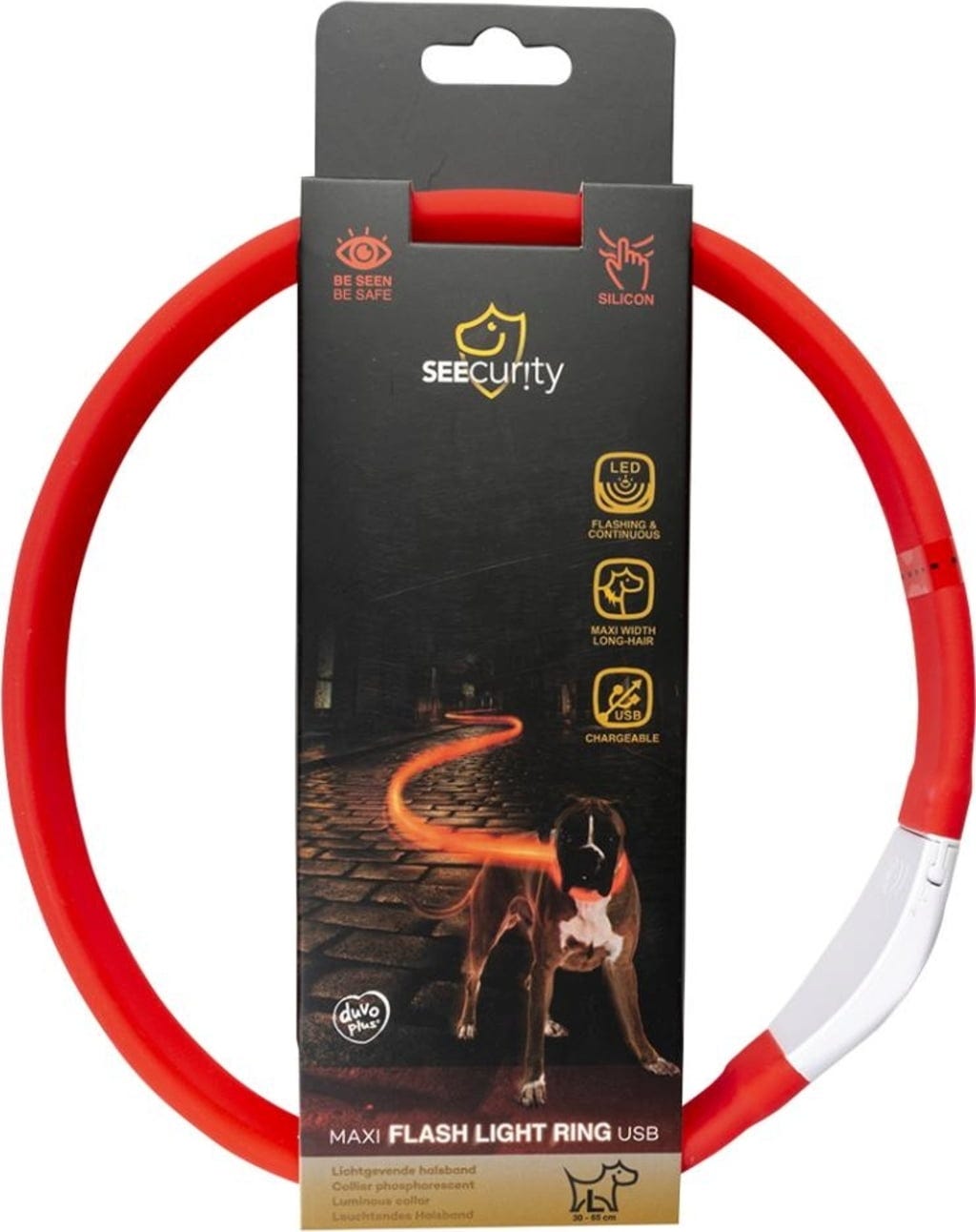 S tremi načini osvetlitve (dva načina utripanja in ena neprekinjena svetloba) ste dobro pripravljeni! Vodotesno ovratnico lahko polnite preko USB-ja, tako da vam ni več treba zamuditi varnih nočnih, zimskih sprehodov in izletov v megli.