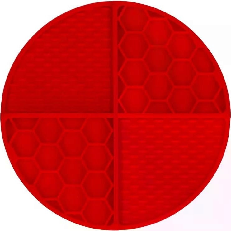 Naj bo hranjenje resnično prijetna izkušnja! Ta inovativna podloga za lizanje je zasnovana tako, da vašemu psu ali mački ponudi zahtevno in vrsti primerno aktivnost. Z dvema različnima teksturama (izbokline in satje) ta podloga lizanje priboljškov spremeni v poseben izziv za vašega ljubljenčka. Vaša žival se mora osredotočiti, da doseže vsak kotiček in režo - kar zagotavlja dolgotrajno prigrizovanje in zabavo med igro!