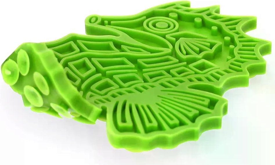 Ta inovativna podloga za lizanje v obliki ljubkega morskega konjička je zasnovana tako, da vašemu psu ali mački ponudi zahtevno in vrsti primerno aktivnost. S svojo teksturirano površino z različnimi vzorci ta podloga lizanje priboljškov spremeni v posebno izkušnjo za vašega ljubljenčka. Vaša žival se mora osredotočiti, da doseže vsak kotiček in špranjo - kar zagotavlja dolgotrajno prigrizovanje in zabavo med igro!