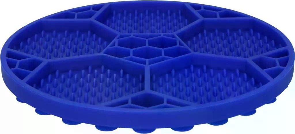 Nogometna žoga še nikoli ni bila tako okusna! Ta inovativna podloga za lizanje je zasnovana tako, da vašemu psu ali mački ponudi zahtevno in vrsti primerno aktivnost. S svojo teksturirano površino z vzorcem nogometne žoge ta podloga lizanje priboljškov spremeni v posebno izkušnjo za vašega ljubljenčka. Vaš ljubljenček se mora osredotočiti, da doseže vsak kotiček in režo - kar zagotavlja dolgotrajno prigrizovanje in zabavo med igro!