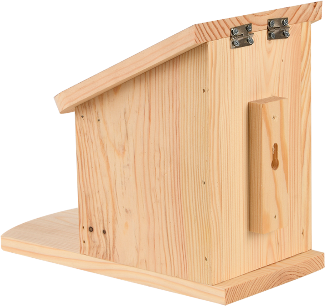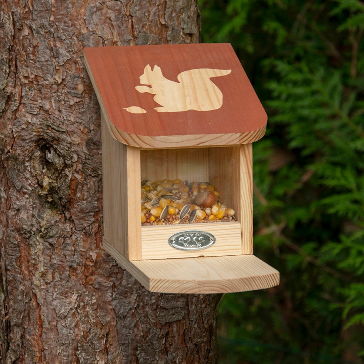 Že ljubeče oblikovana zasnova kaže - ta hišica je idealno počivališče za veverice, kjer si privoščijo malico. Svoj plen pogosto vzamejo s seboj, da si naredijo zalogo za zimo. Ptičjo krmilnico je najbolje napolniti z arašidi, orehi, lešniki in sončničnimi semeni. Tako ne samo, da lažje opazujete spretne glodavce, ampak jih tudi podpirate pri iskanju hrane.