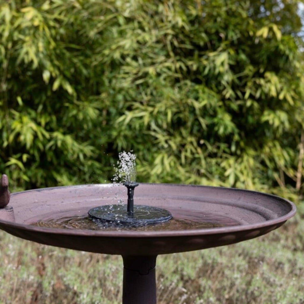 Dopolnite ptičjo kopel ali ribnik in ju spremenite v fontano! Zahvaljujoč črpalki na sončno energijo lahko majhno fontano upravljate brez priklopa na električno omrežje. Preprosto jo postavite v vodo, nastavljajte soncu in uživajte v nežnih zvokih brizganja vode!