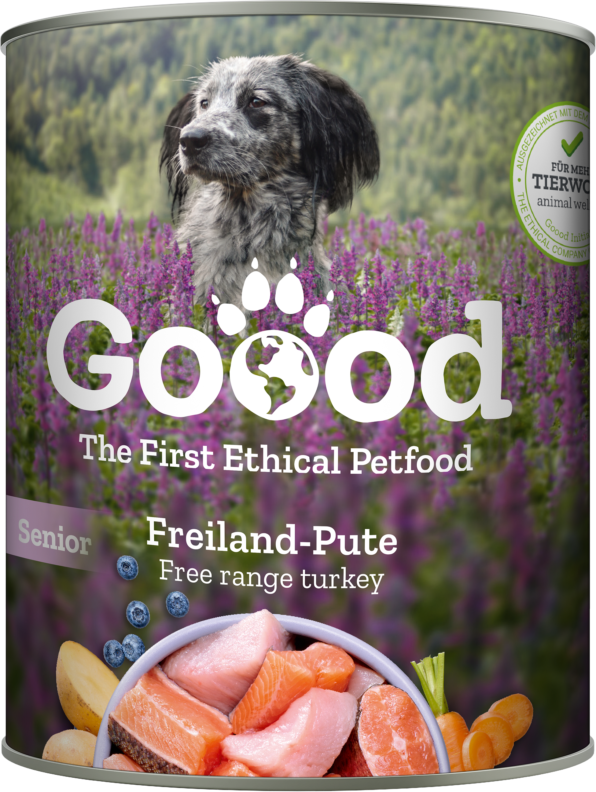 Iščete za svojega pasjega seniorja prehrano, ki ni le uravnotežena in vrsti primerna, temveč tudi dela naš svet malce boljši? Potem je Goood Senior s puranom iz proste reje in trajnostno postrvjo prava izbira! Vrsti primerna prehrana je namreč temelj za vitalno življenje psa tudi v zrelih letih – in to s polnim spoštovanjem do narave.