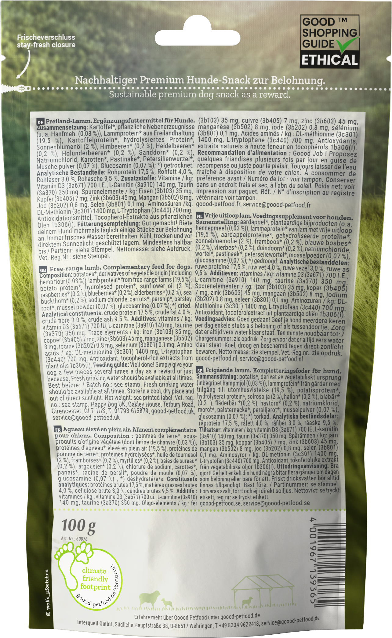 V tem premium priboljšku za pse so le izbrane sestavine, kot so nežno jagnječje meso iz proste reje ter lokalno pridelano korenje in pastinak. To ni le neverjetno okusno, temveč tudi dragocen prispevek h vsakodnevnemu jedilniku vašega štirinožnega ljubljenčka.