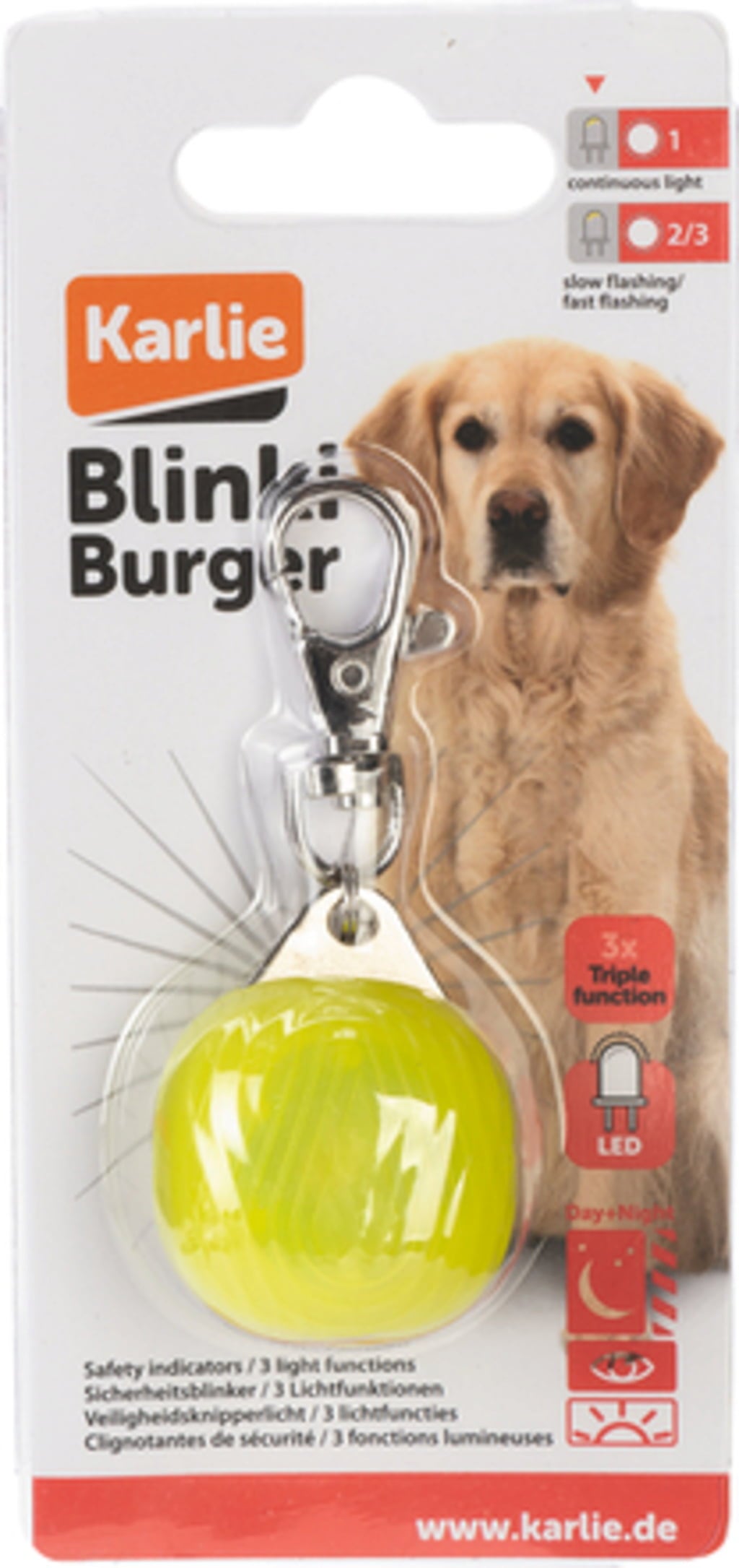Blinki Disc znamke Karlie je vodoodporna LED varnostna utripalka z izjemno svetlimi LED diodami. Z enostavnim pritiskom na hrbtno stran diska lahko preprosto preklapljate med različnimi načini svetlobe: