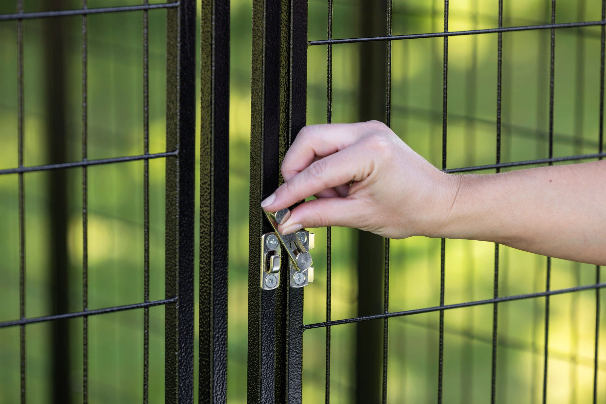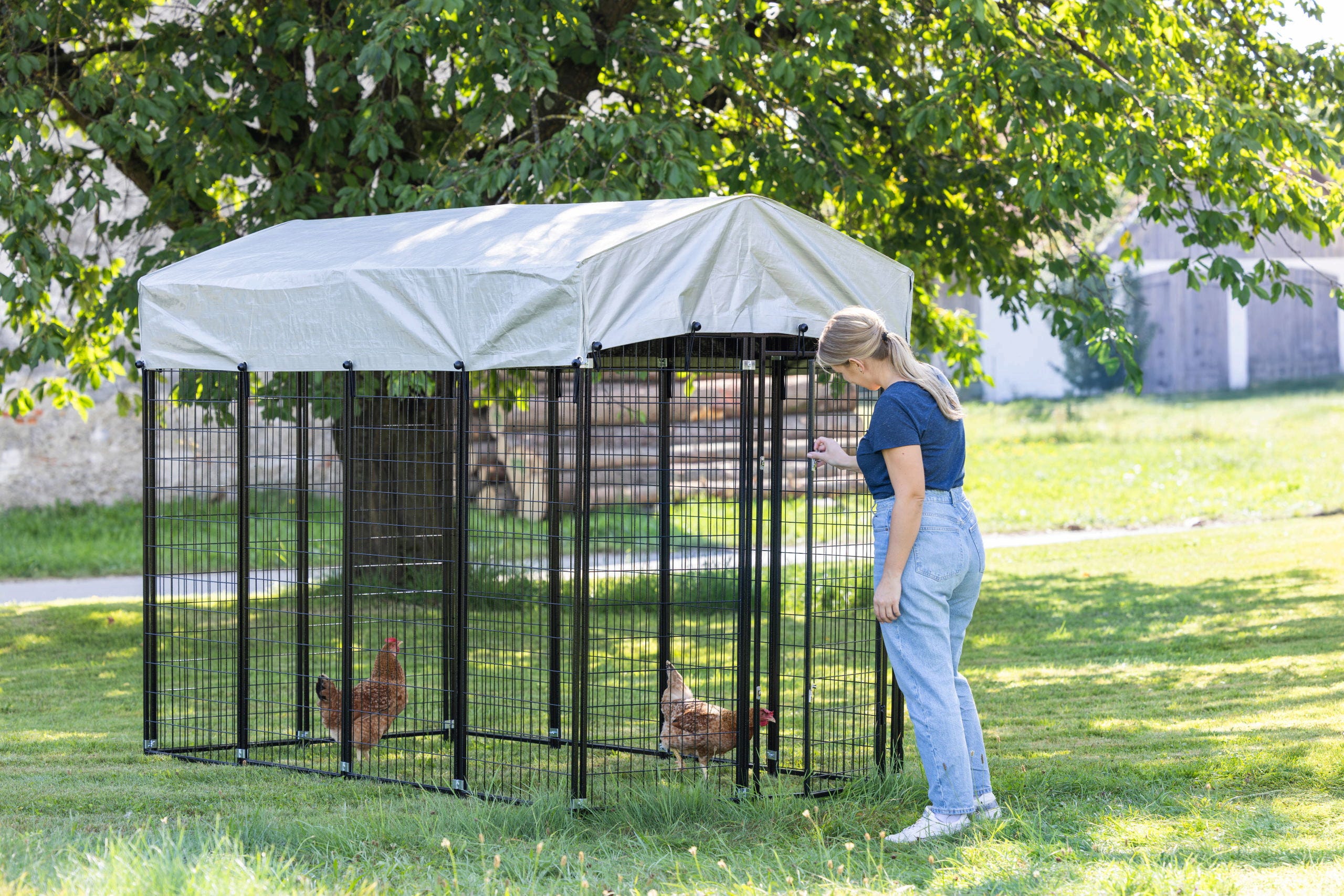- Udoben vstop: Velika vhodna vrata (49 x 132 cm) omogočajo enostaven vstop v notranjost ograde.