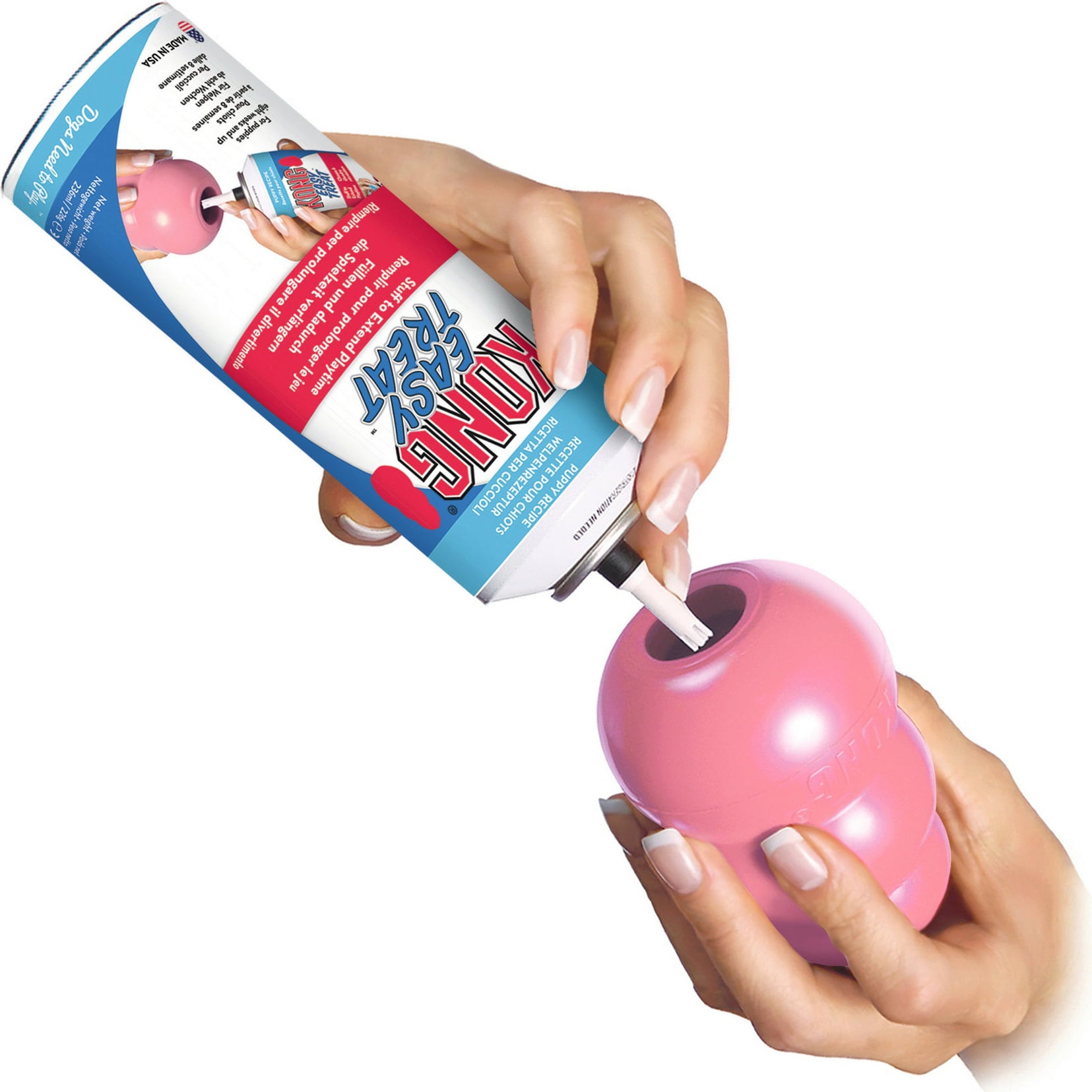 KONG® Easy Treat™ pasta je neustavljiv prigrizek v priročem pršilu za mladičke od 8. tedna starosti. Okusen priboljšek lahko iztisnete v eno od pasjih igrač KONG® in tako spodbudite svojega kosmatinca k igri.