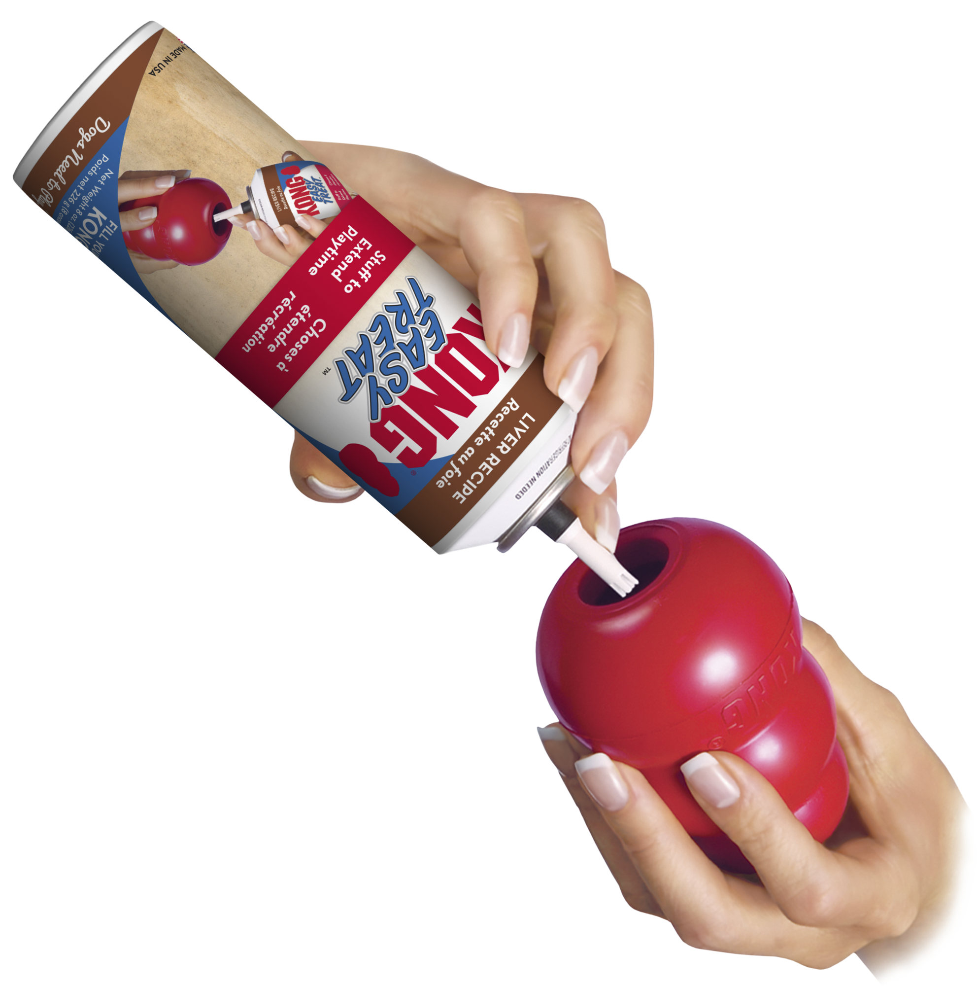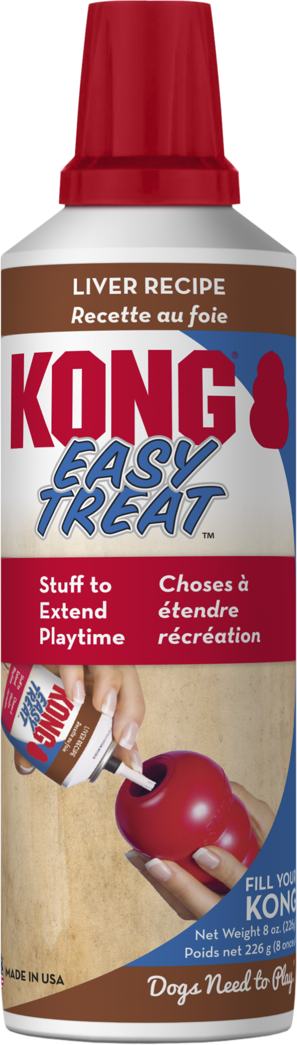 KONG® Easy Treat™ pasta je neustavljiv priboljšek v priročni pršilu za odrasle pse. Ta okusen priboljšek lahko dodate kateri koli pasji igrači KONG® za spodbujanje igre. Ima poseben okus po jetrih!