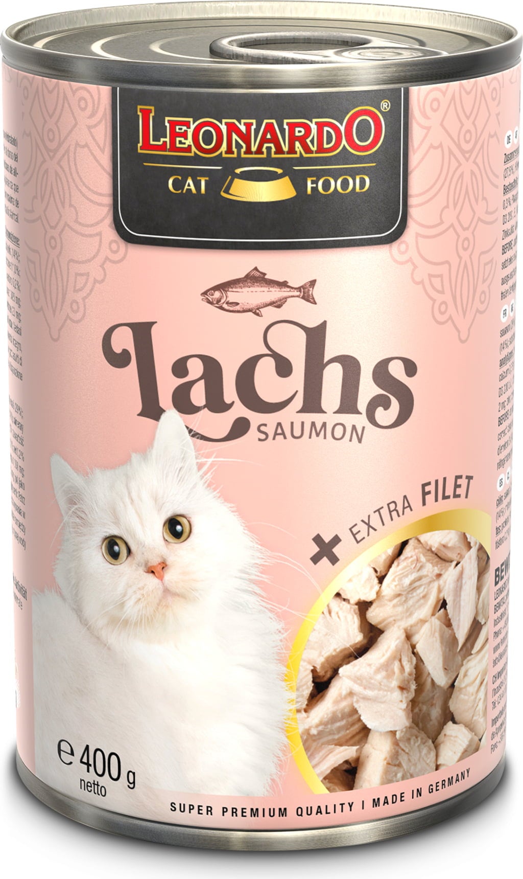 Ta slasten gurmanski meni razvaja mačke z zelo finimi lososovimi in piščančjimi fileji, nežno kuhanimi v lastnem soku. Visokokakovostno lososovo olje dopolnjuje delikaten recept. Neustavljiv okus brez sladkorja, umetnih barvil, arom in konzervansov!