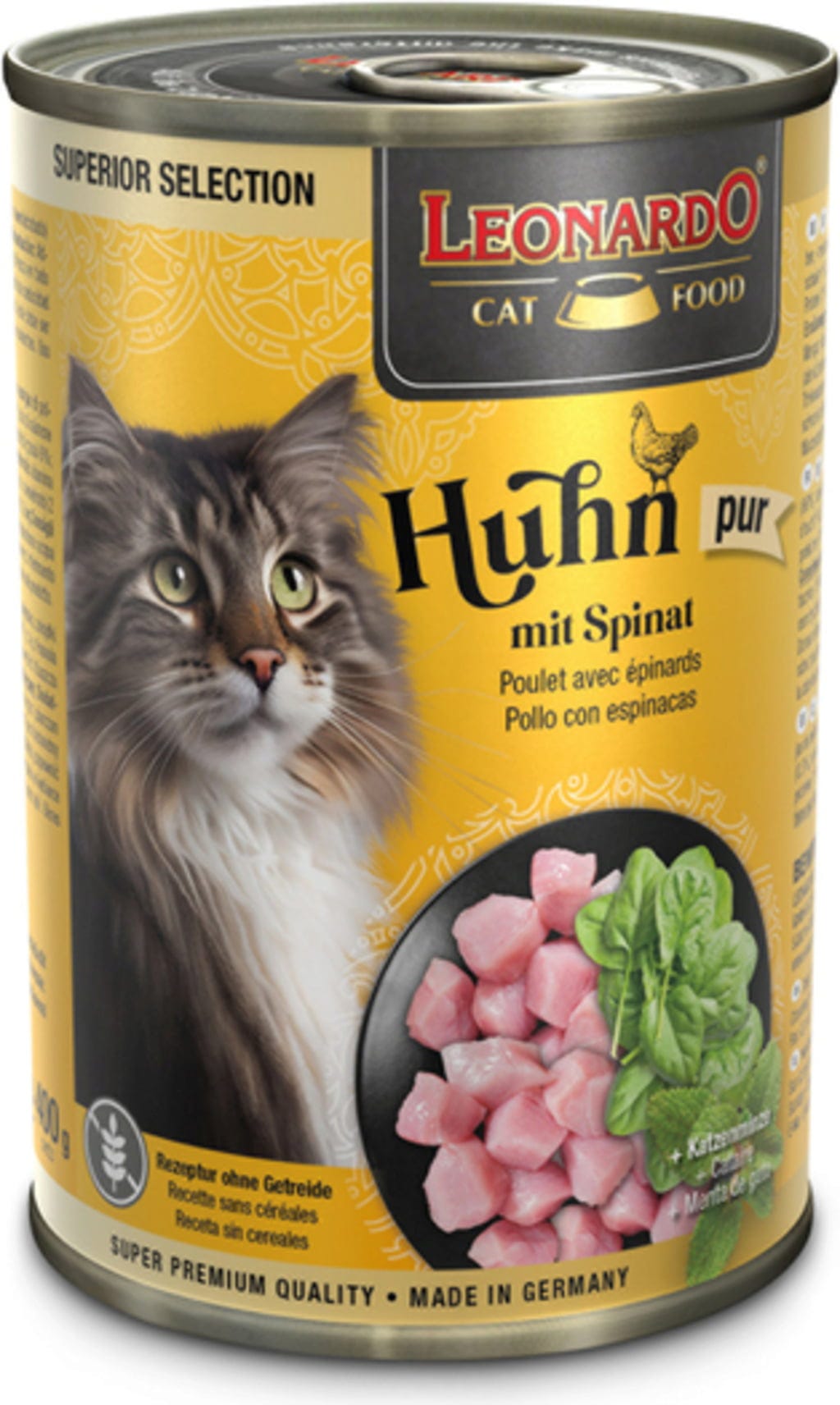 Ta mokra mačja hrana iz Leonardove linije Superior Selection združuje dragocene hranilne snovi iz piščančjega mesa in drobovine z okusno špinačo. Mešanica, v katero se bo vaša mačka zaljubila!