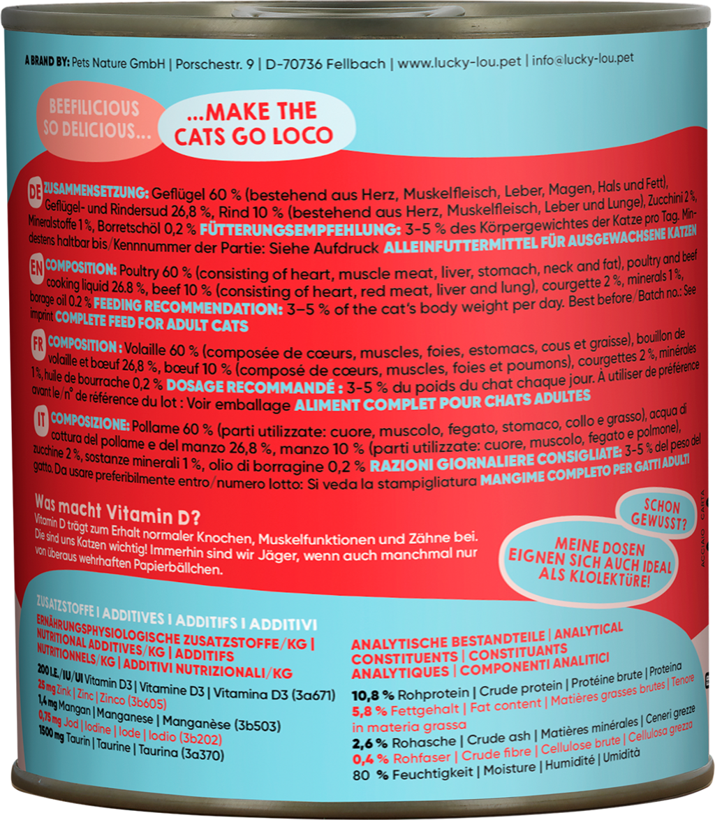 Lucky Lou Life Stage mačja hrana Adult - perutnina in govedina, 800 g