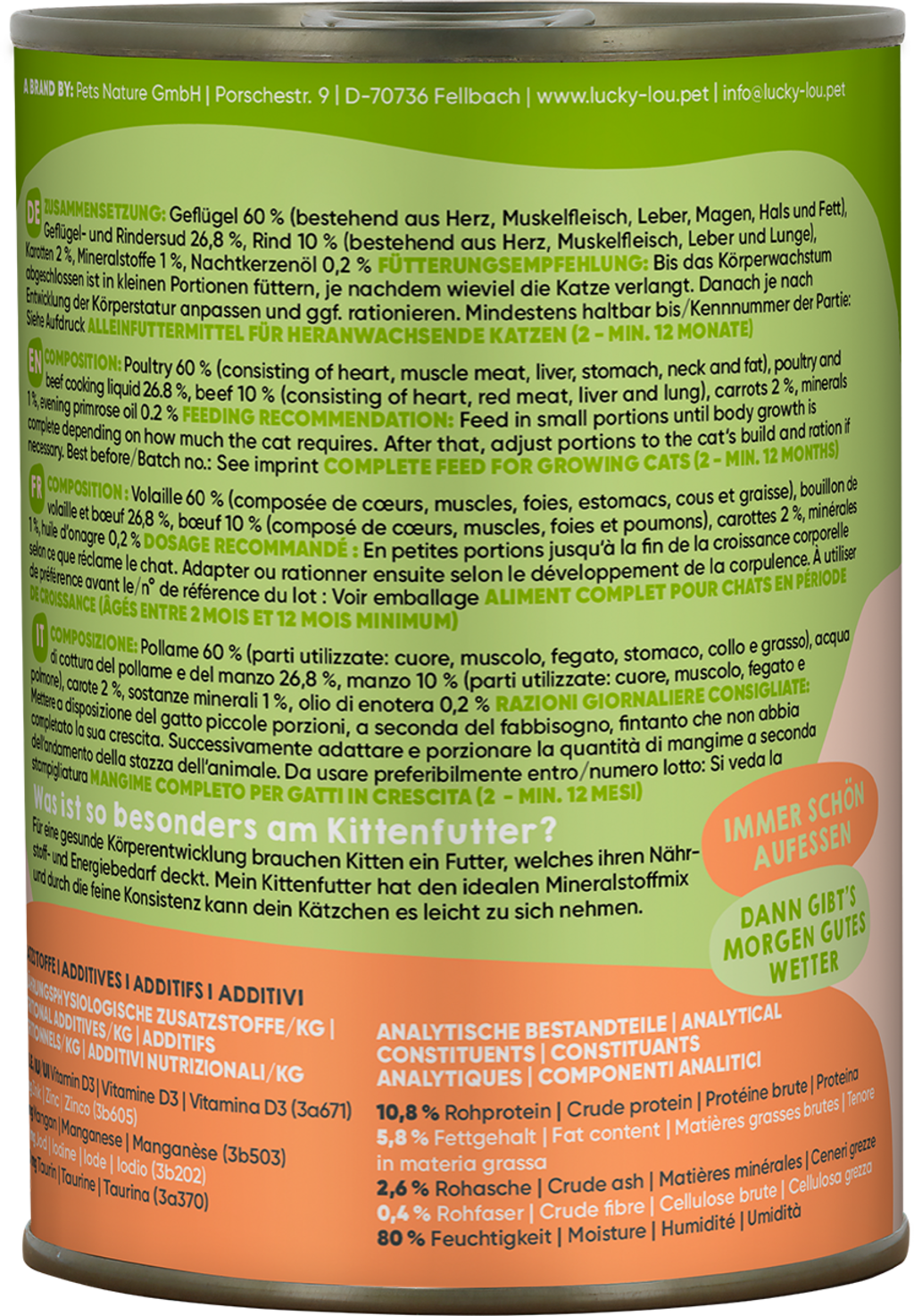 Lucky Lou Life Stage mačja hrana Kitten - perutnina in govedina, 400 g