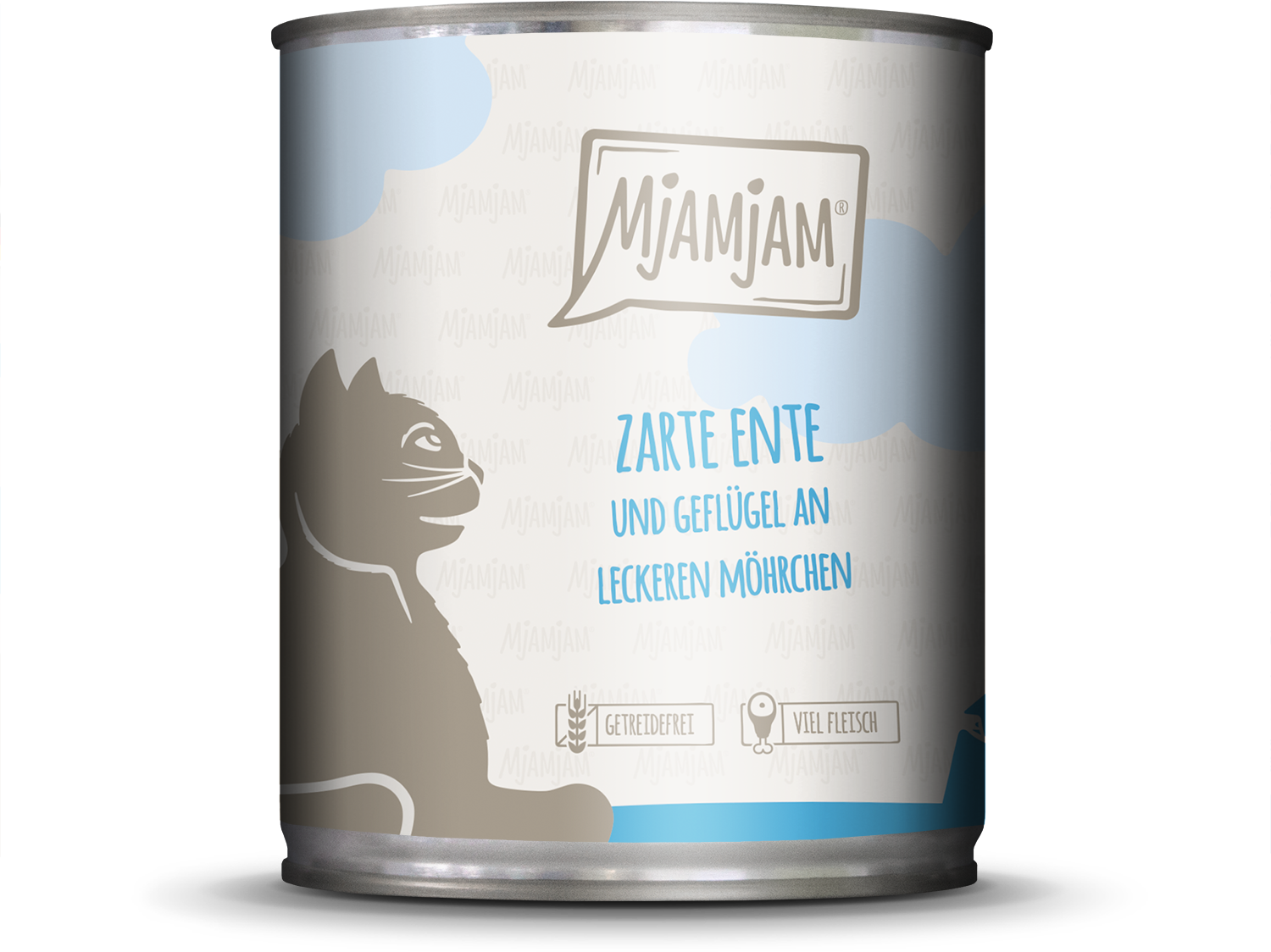 Mjamjamova mokra hrana razvaja vašo mačko z bogatim okusom, neprimerljivo kakovostjo in ščepcem ljubezni. Vaša mačka lahko pričakuje poln obrok svežega račjega mesa, mehke perutnine in hrustljavega korenja.