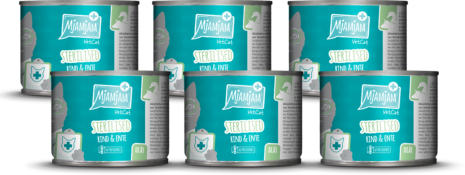 Mjamjam Mačja hrana Sterilized - govedina in raca, 6 x 200 g