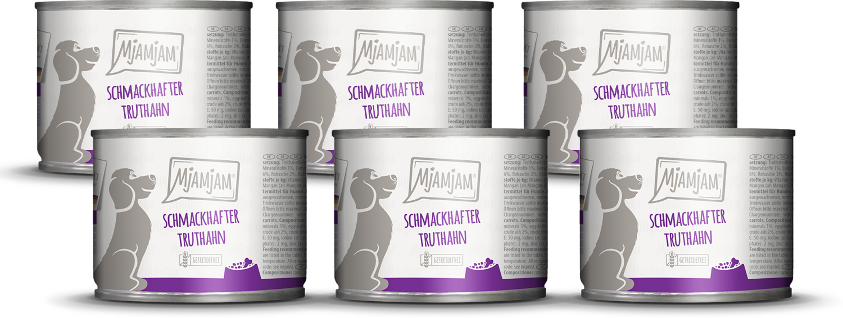 Mjamjamova mokra hrana vašega psa razvaja z bogatim okusom, neprimerljivo kakovostjo in kančkom ljubezni. Vaš štirinožni prijatelj lahko pričakuje zdrav obrok iz svežega purana in hrustljavega korenja.