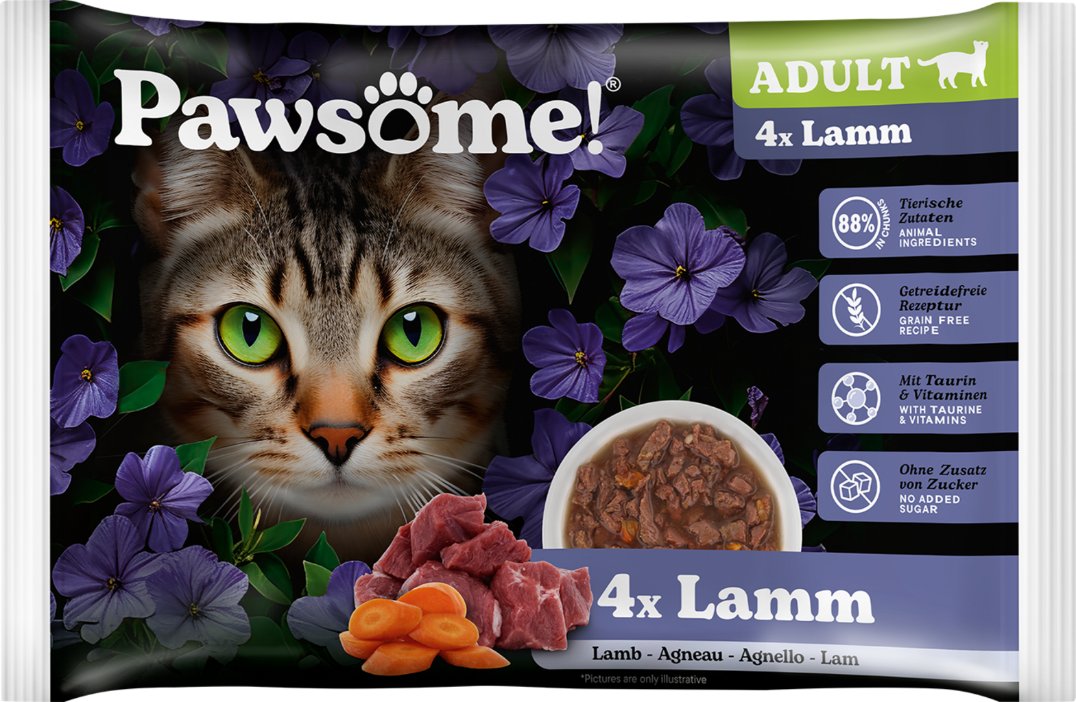 Pawsome! Mokra mačja hrana Adult - jagnjetina, 4 x 85 g (340 g)