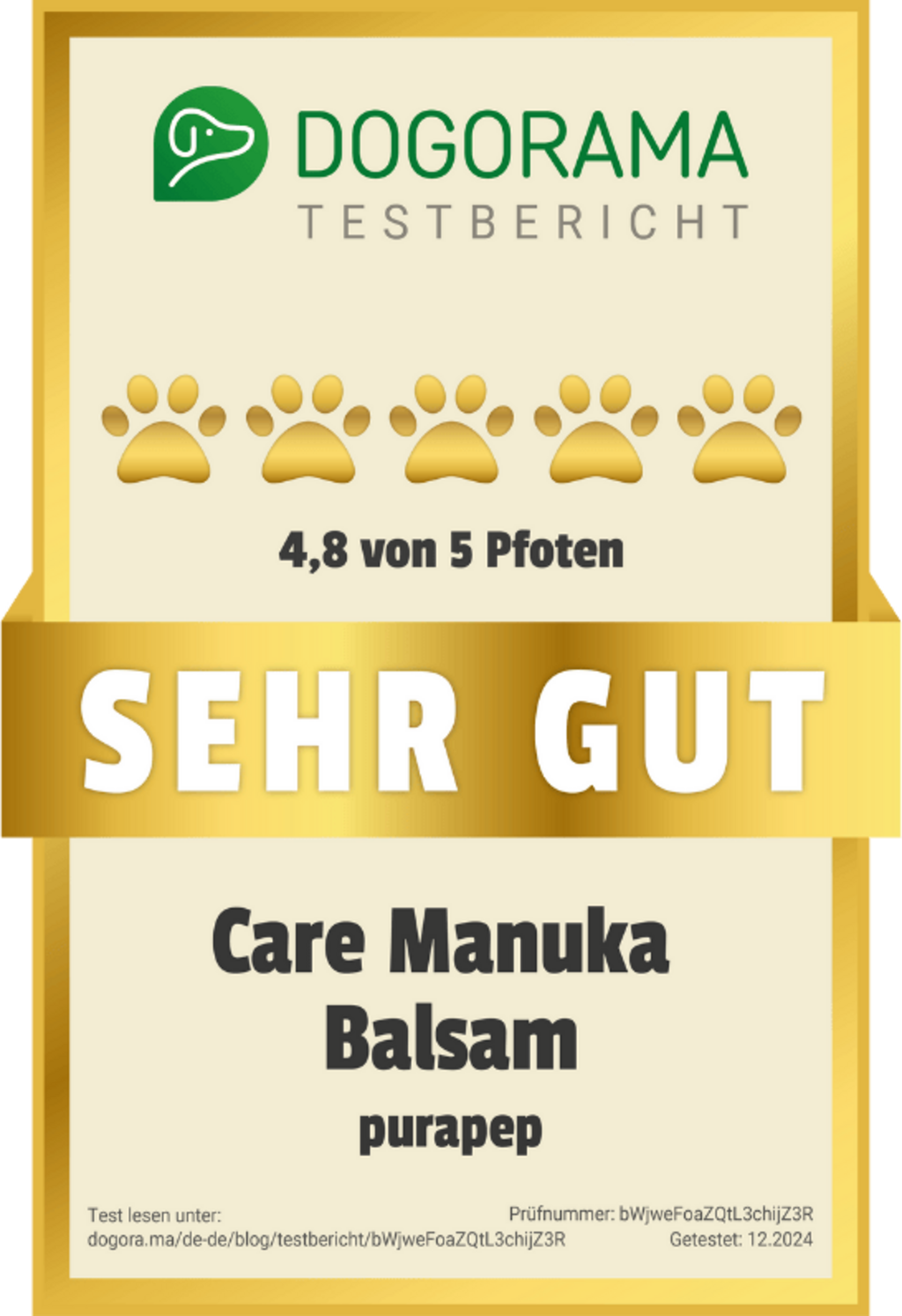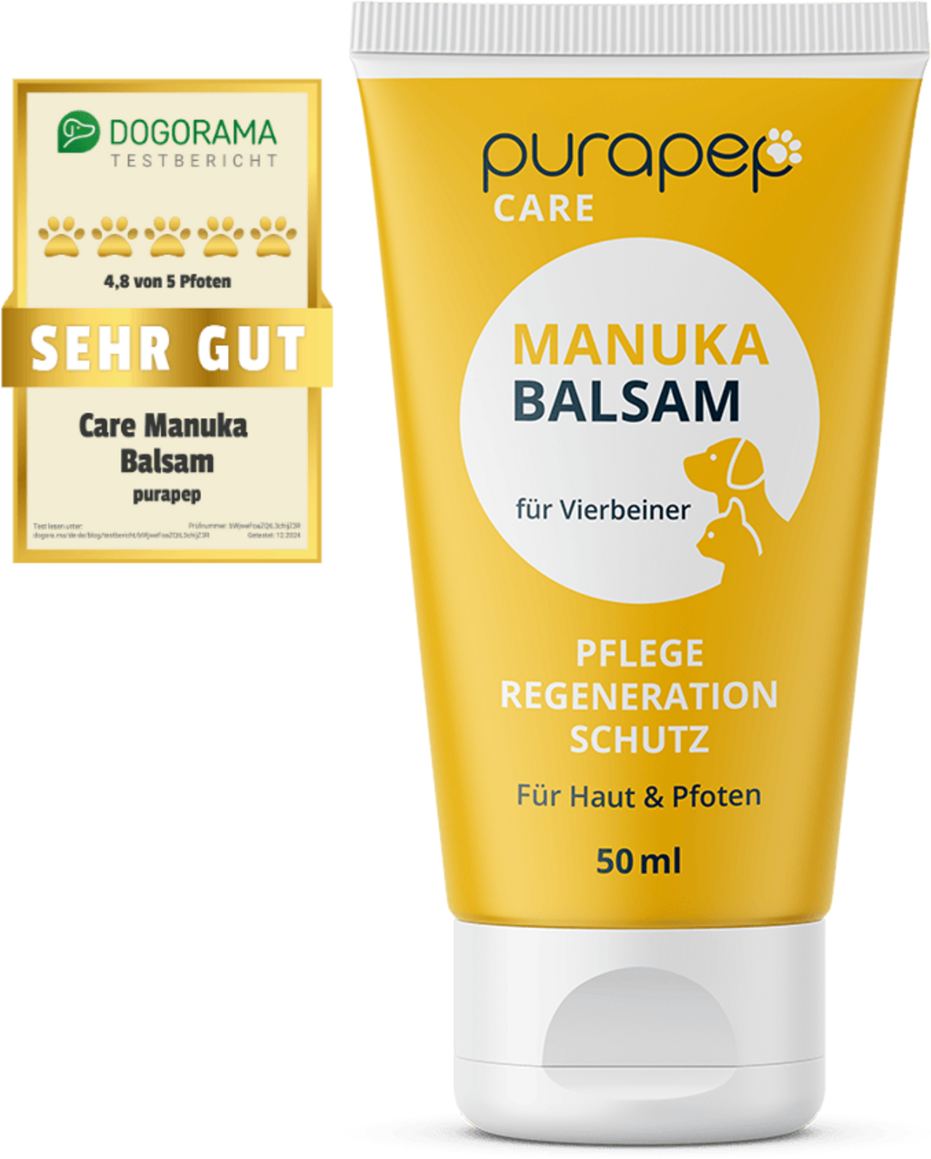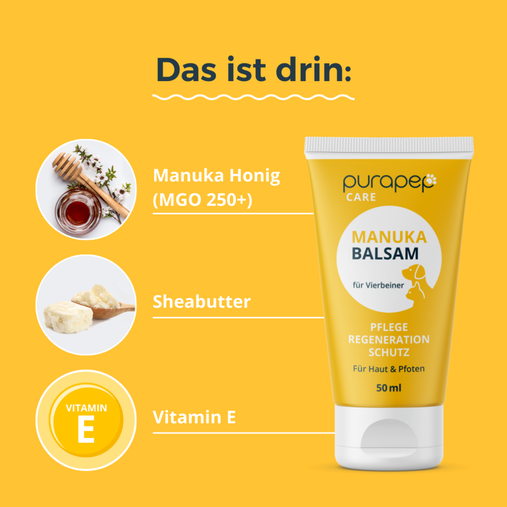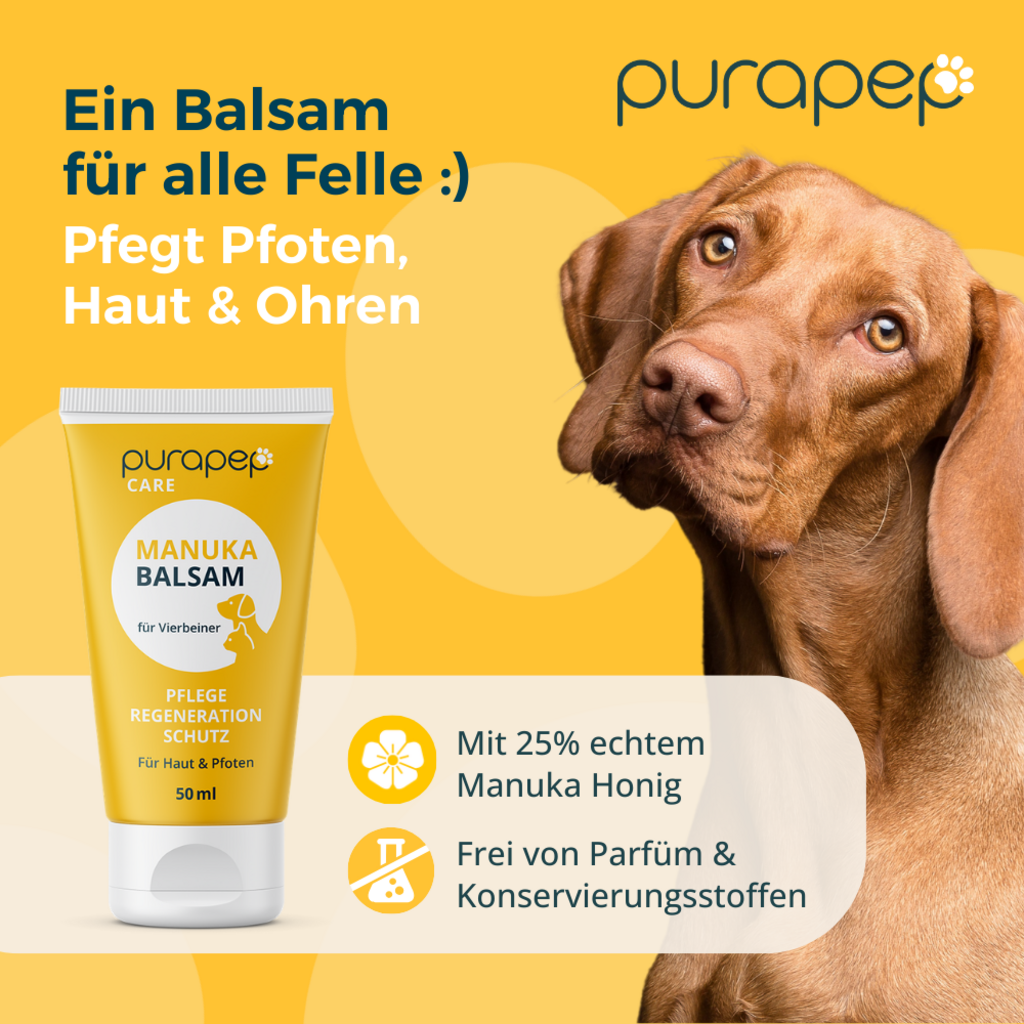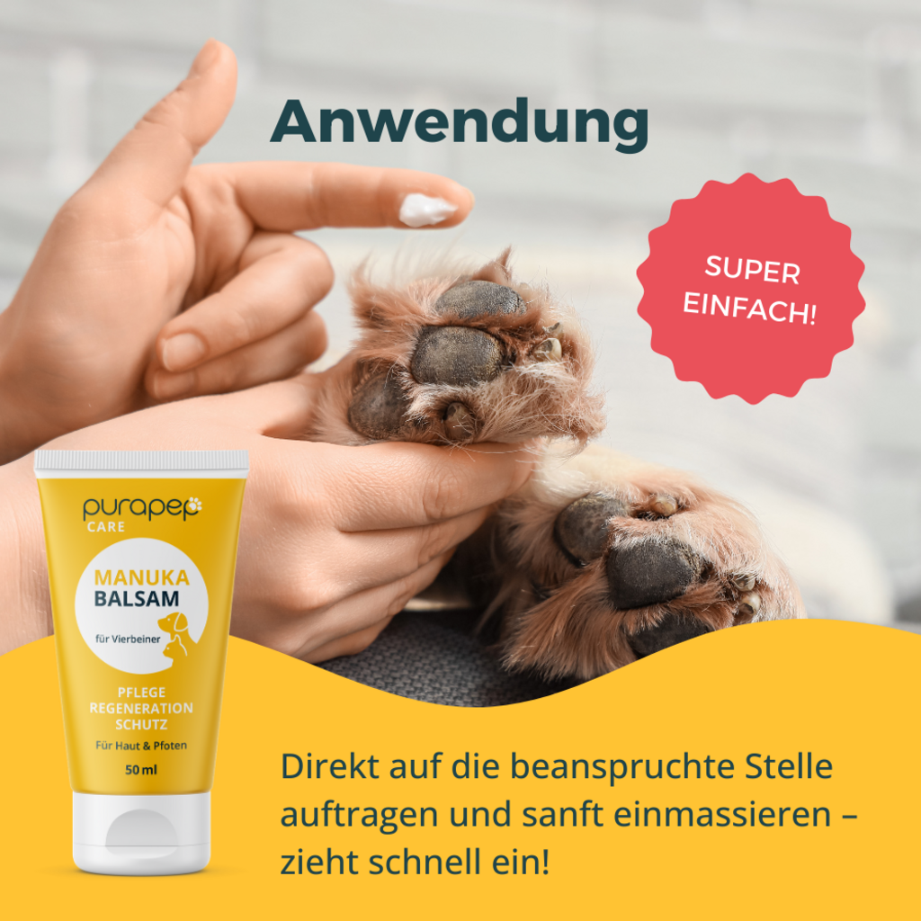Razvajajte tačke svojega ljubljenega štirinožca z balzamom purapep Care Manuka. Posebej oblikovana nega je idealna rešitev za razpokane šape in suho kožo, ki se lušči.