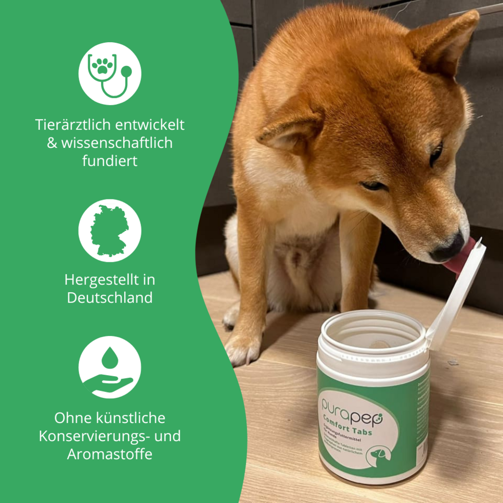 Purapep Comfort še posebej priporočamo v situacijah, ko štirinožci kažejo povečan strah ali agresijo. To se lahko zgodi na primer med obiskom veterinarja, na potovanju ali v novih okoljih. Prašek je idealen tudi za podporo v zahtevnih življenjskih situacijah, kot je prihod novega družinskega člana ali zvok ognjemeta.