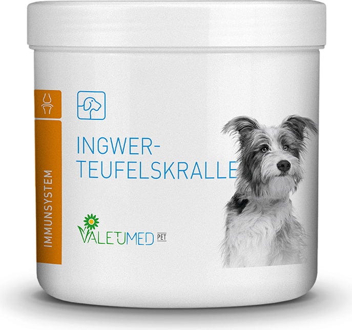 Dopolnilna krmna mešanica Ingver-Teufelskralle znamke Valetumed ponuja vašemu psu dragoceno kombinacijo skrbno izbranih naravnih snovi. Ciljna receptura z mletim hudičevim krempljem in ingverjem je bila razvita, da nežno podpira gibalni aparat in normalno agilnost vašega štirinožca v vsakdanjem življenju.
