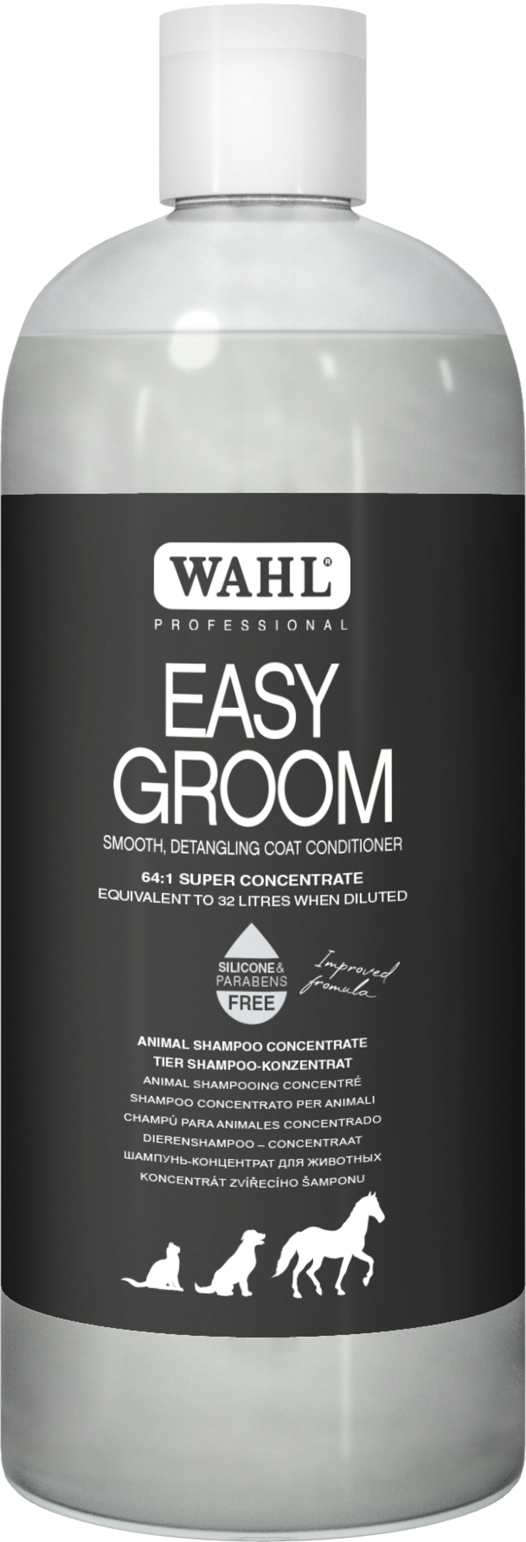 Ta koncentrirani balzam zagotavlja vlago in zaščito po čiščenju. Visoko učinkovit Easy Groom očisti dlako in jo pusti čisto in mehko brez lepljivih ostankov. Formuliran z vitaminom E.