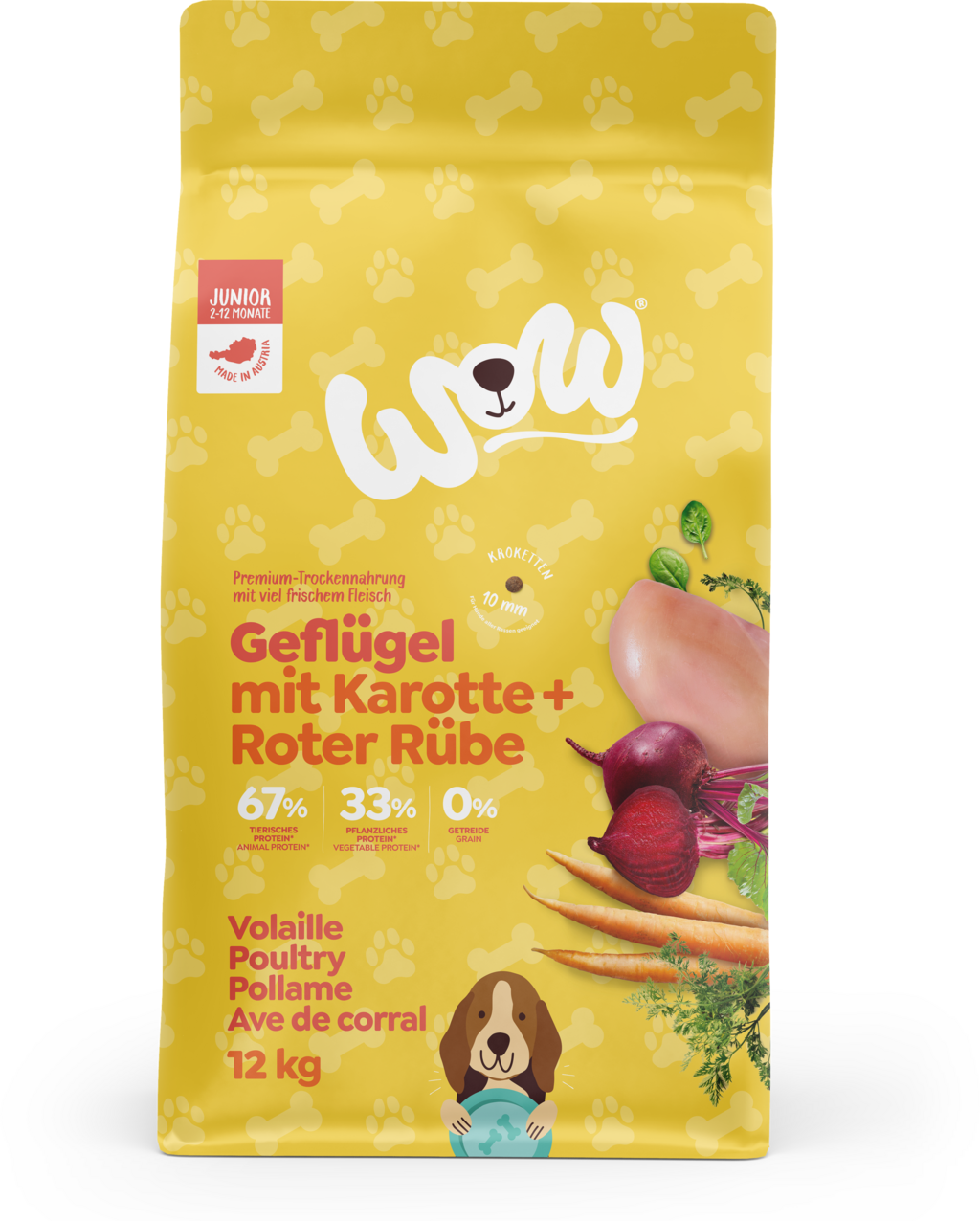 WOW Suha pasja hrana JUNIOR - perutnina, 12 kg