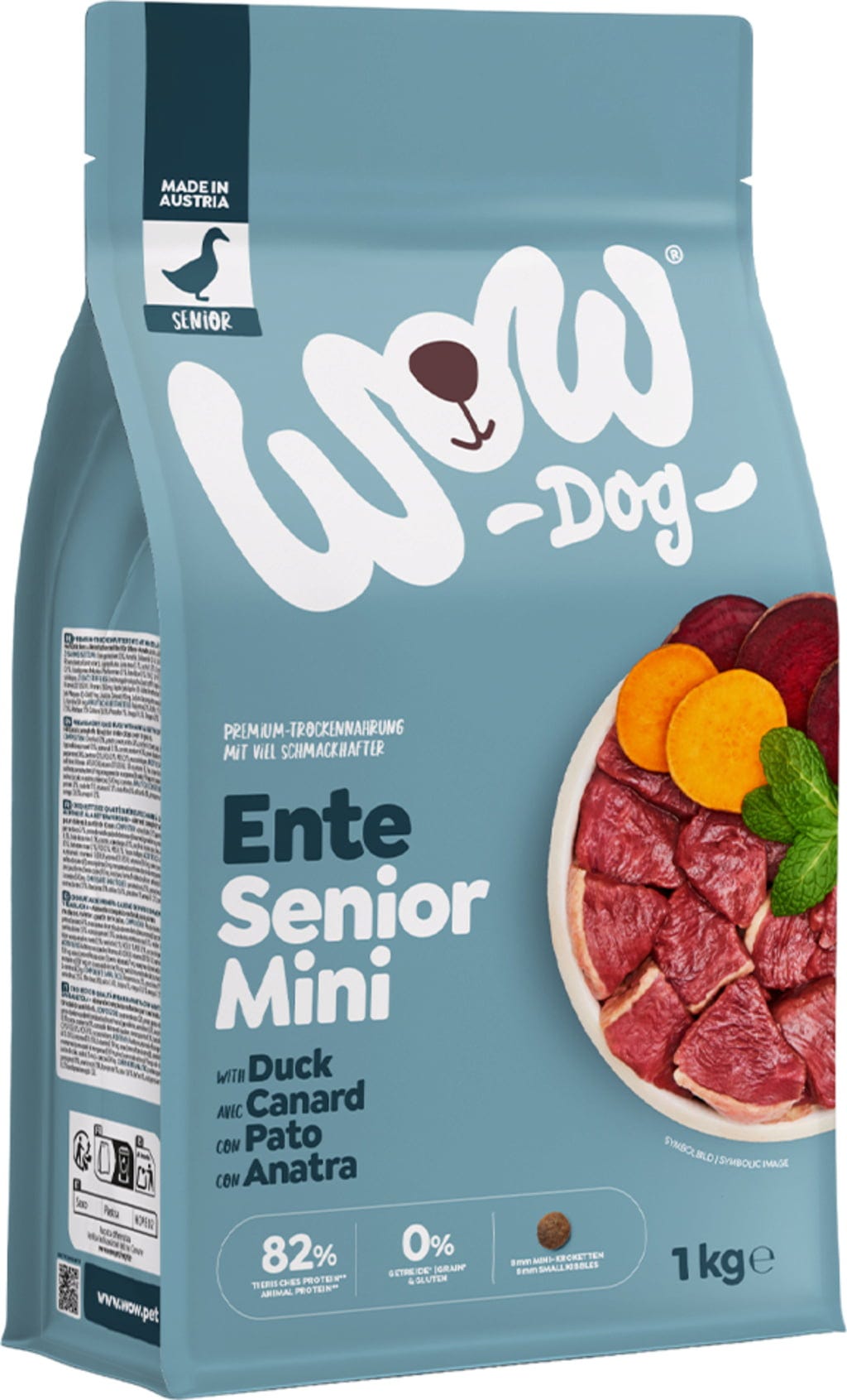 Izkušnenj v jeziku slovenščina za izdelek WOW Suha pasja hrana SENIOR Minis - raca