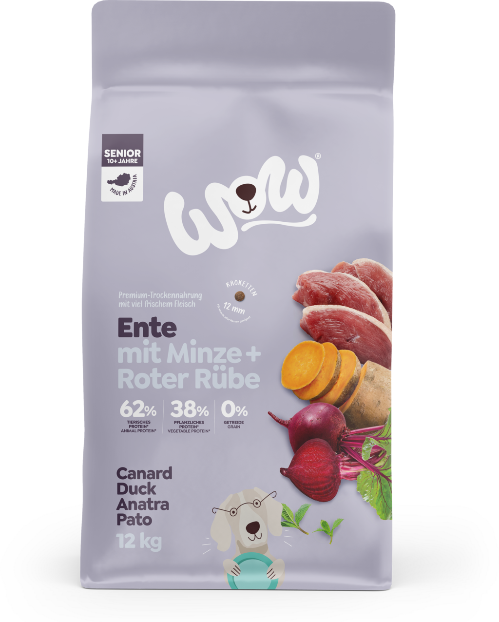 Izkušnenj v jeziku slovenščina za izdelek WOW Suha pasja hrana SENIOR - raca